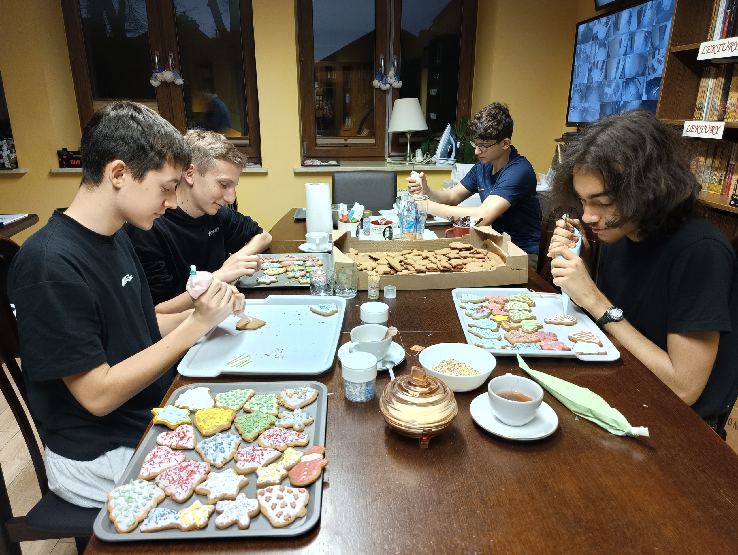 Kilka dni temu zakończyliśmy na Bursie akcję „PIERNIK”, która obejmowała wspólne przygotowanie pierników świątecznych – od robienia ciasta, przez pieczenie, aż po zdobienie i pakowanie. Wykonane pierniki zostały przeznaczone jako świąteczny upominek i znalazły się przy każdym nakryciu na stół wigilijny. Akcja cieszyła się dużym zaangażowaniem wychowanków i wychowawców, którzy chętnie włączali się w poszczególne etapy pracy. Wspólne działania przebiegały w radosnej atmosferze, sprzyjały dobrej zabawie oraz integracji społeczności Bursy. Był to czas współpracy, kreatywności i budowania relacji, który wprowadził wszystkich w świąteczny nastrój.