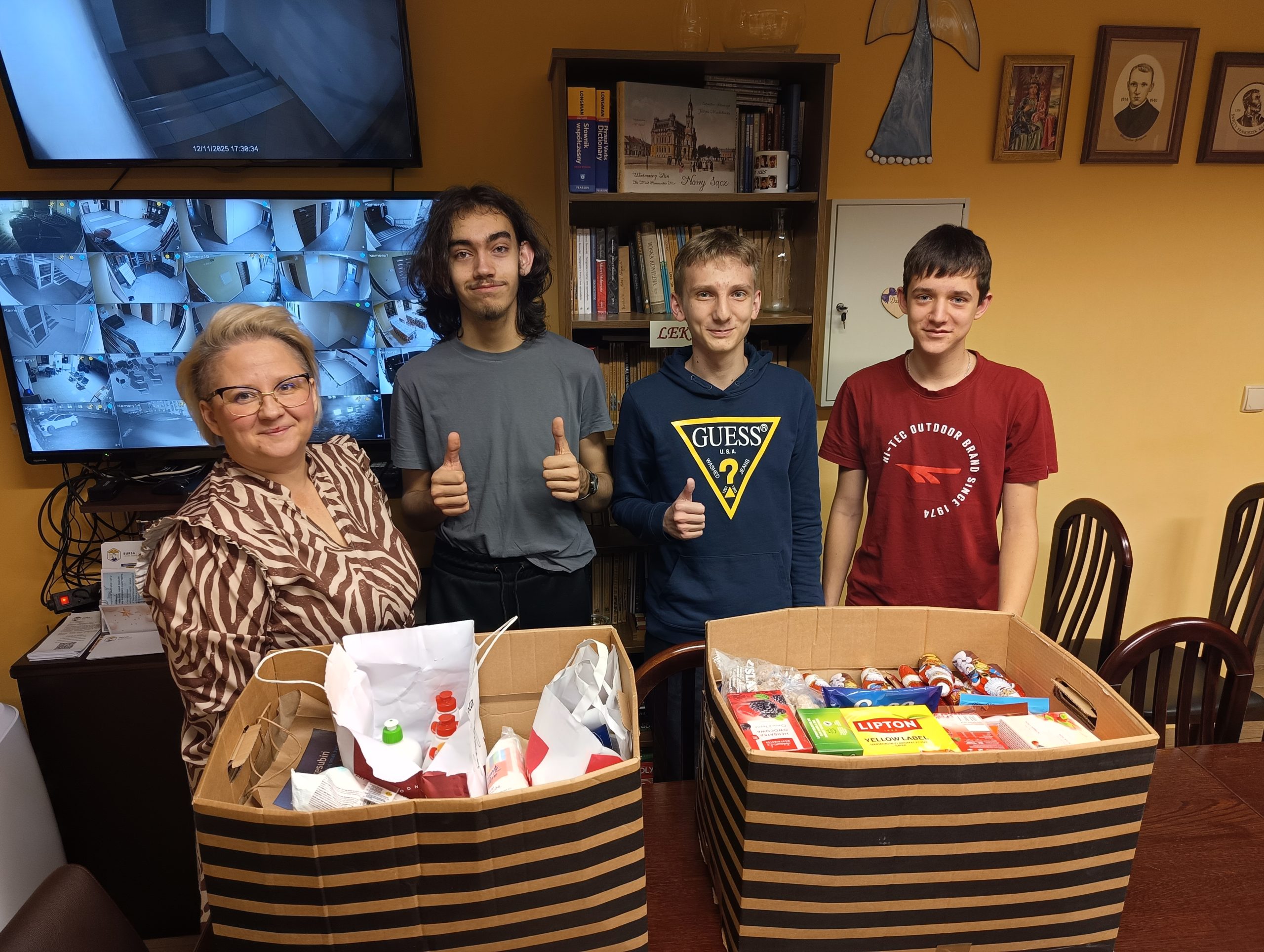11 grudnia zakończyliśmy zbiórkę potrzebnych produktów dla podopiecznych Caritas Parafii Ducha Świętego. Przez kilka tygodni wychowankowie aktywnie włączali się w akcję, losując i przynosząc produktu spożywcze i chemię z własnej inicjatywy oraz systematycznie składając je do przygotowanego, dużego pudła znajdującego się w pokoju wychowawców. Po zakończeniu zbiórki wszystkie zgromadzone artykuły zostały wspólnie spakowane do specjalnych toreb i pudeł, i przekazane do koordynatorów Caritas. Samo pakowanie paczek sprawiło wychowankom wiele radości i było okazją do współpracy oraz integracji. Następnie gotowe paczki zostały zaniesione i przekazane w umówionym miejscu na terenie kościoła ojców jezuitów. Dzięki przeprowadzonej akcji udało się wesprzeć seniorów oraz podopiecznych Caritas. Inicjatywa ta miała nie tylko wymiar materialnej pomocy, ale również wychowawczy – pozwoliła uwrażliwić młodych ludzi na potrzeby innych, szczególnie osób starszych i najbardziej potrzebujących oraz pokazała, jak ważna jest solidarność i bezinteresowna pomoc drugiemu człowiekowi, zwłaszcza w okresie przedświątecznym.