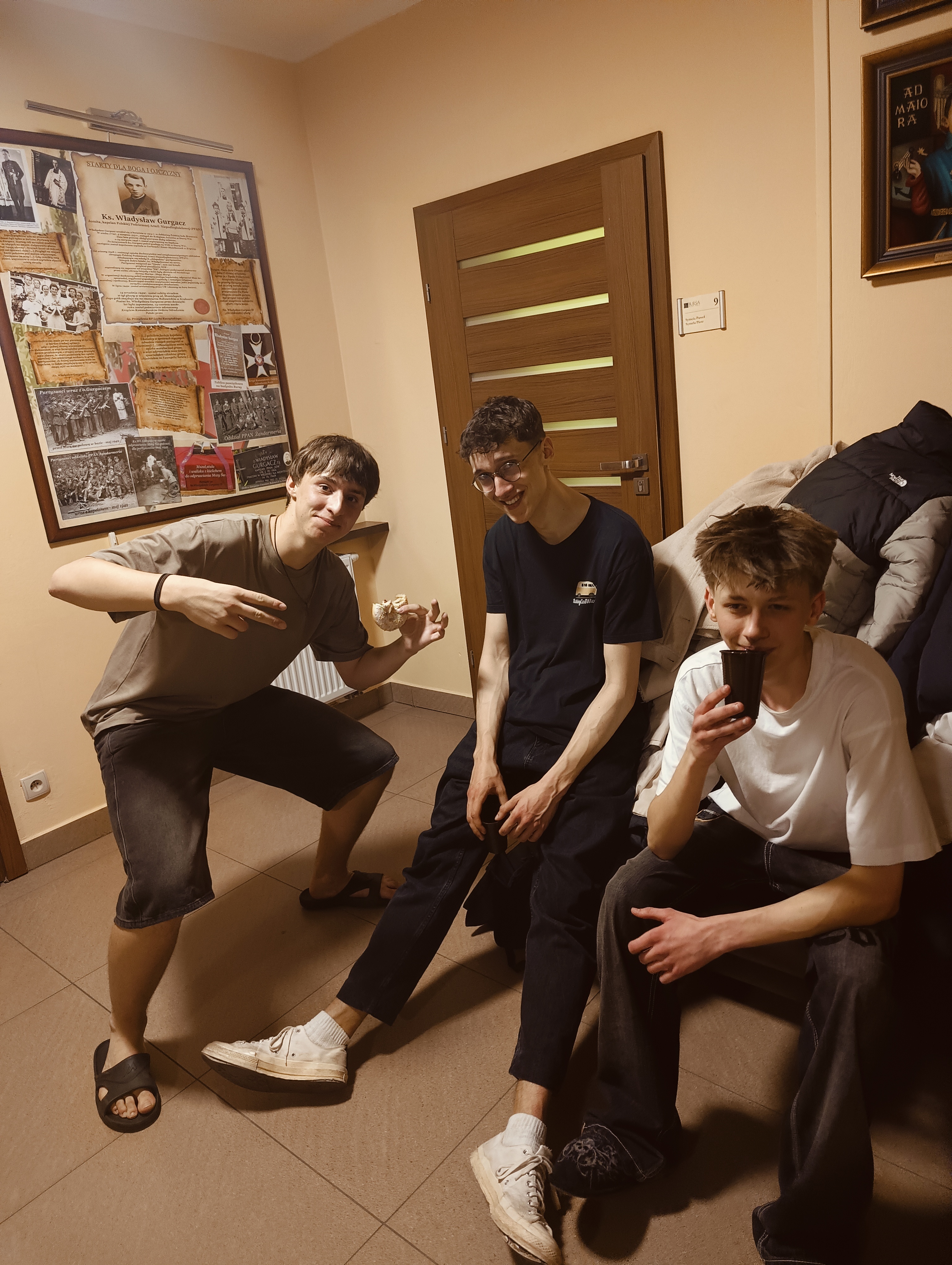 W poniedziałek 3. marca 2025 r. obchodziliśmy święto Patrona Bursy – ks. Władysława Gurgacza SI, kapelana Żołnierzy Wyklętych. Uroczystą Mszę św. odprawił, w zastępstwie o. Prowincjała Towarzystwa Jezusowego, o. Damian Mazurkiewicz SI, homilie wygłosił o. Adrian Helik SI, który przybliżył nam sylwetkę duchową naszego Patrona. Eucharystię koncelebrowali również o. Damian Pawlik SI – dyrektor naszej Bursy, o. Artur Niechwiej SI – dyrektor Jezuickiego Centrum Edukacji (JCE) oraz ks. dr Paweł Kochaniewicz – dyrektor Zespołu Szkół Katolickich. Na uroczystości obecni byli zaproszeni goście min. posłowie, wiceprezydent, sekretarz i skarbnik miasta Nowego Sącza, radni, dyrektorzy szkół do których uczęszczają nasi wychowankowie, panie kierowniczki internatów sądeckich, przedstawiciele IPN z Krakowa, przyjaciele i sympatycy ks. Władysława Gurgacza, rodzice oraz dobrodzieje naszej Bursy. Po uroczystej Mszy św. nasi wychowankowie zaprezentowali wzruszający montaż słowno-muzyczny, w którym przypomnieli zebranym krótką biografię i działalność jezuity, niezłomnego kapelana Żołnierzy Wyklętych, przeplatany śpiewem pieśni patriotycznych. Po części artystycznej, za Bursowym sztandarem udaliśmy się pod pamiątkową tablicę poświęconą ks. Gurgaczowi, umieszczoną na fasadzie Bursy, by złożyć kwiaty. Potem wspólnie z zaproszonymi gośćmi udaliśmy się do budynku na, przygotowany przez nasze panie z kuchni, poczęstunek. Goście mieli okazje zobaczyć Bursę „od środka”, wychowankowie bardzo chętnie oprowadzili gości po budynku opowiadając przy tym o codziennym życiu i funkcjonowaniu w Bursie. Na auli można było obejrzeć przygotowaną prezentację, skosztować słodkich i słonych przekąsek i uraczyć się pyszną kawą lub herbatą. Dało się słyszeć wiele życzliwych słów pod adresem naszej dzielności w Bursie, ale także i rozmów o samym ks. Władysławie Gurgaczu SI i jego krótkim, ale jakże inspirującym życiu.