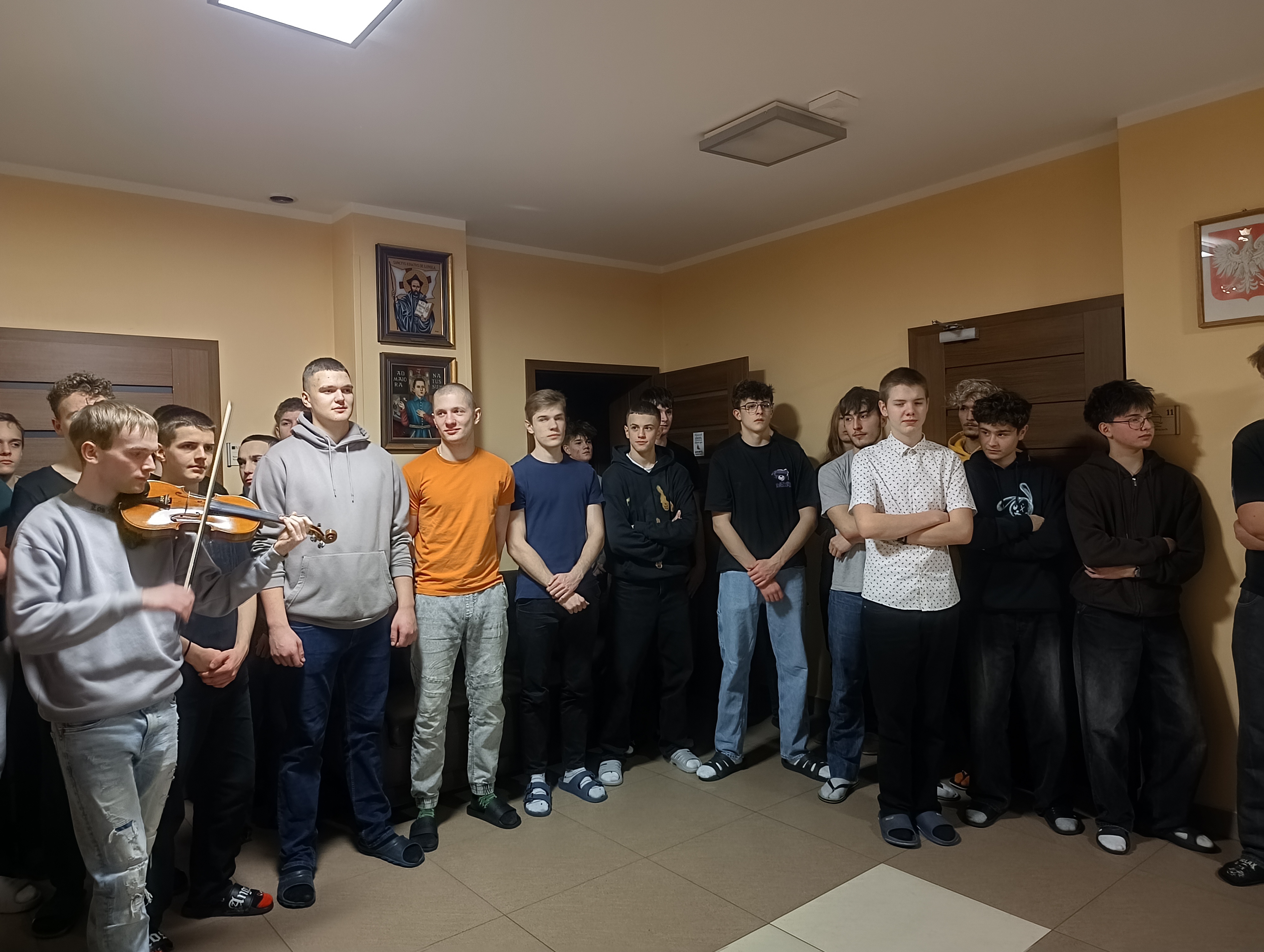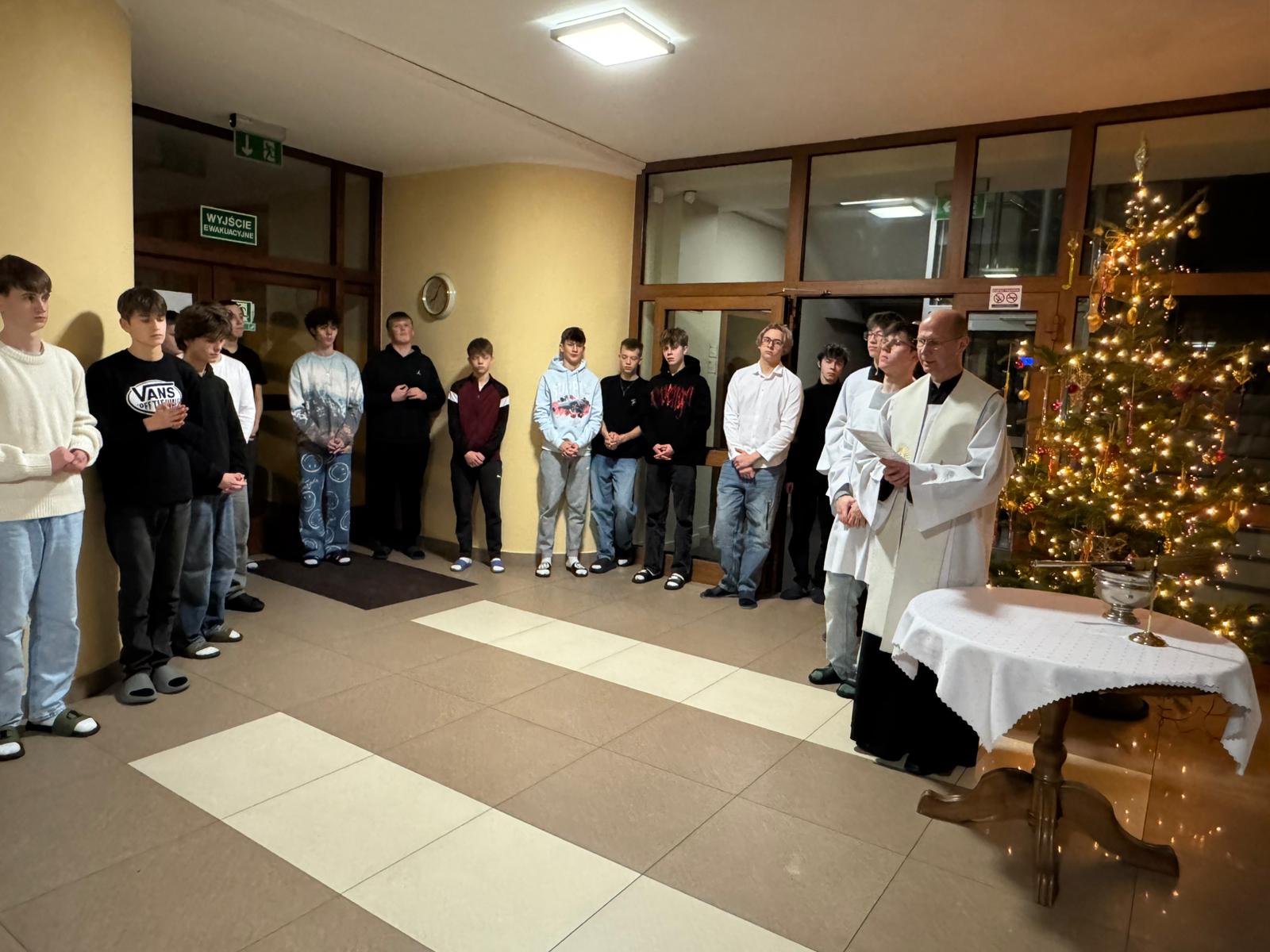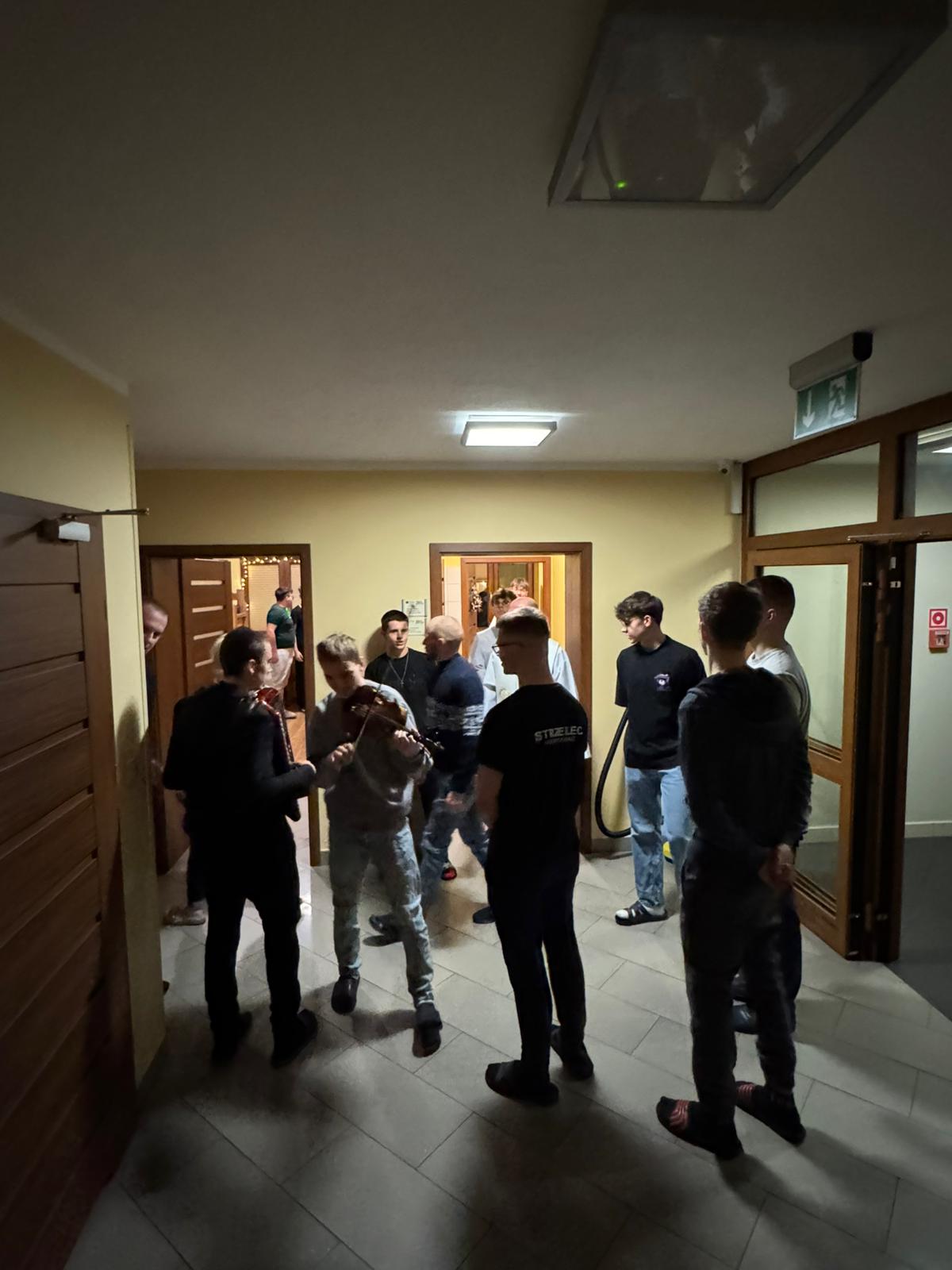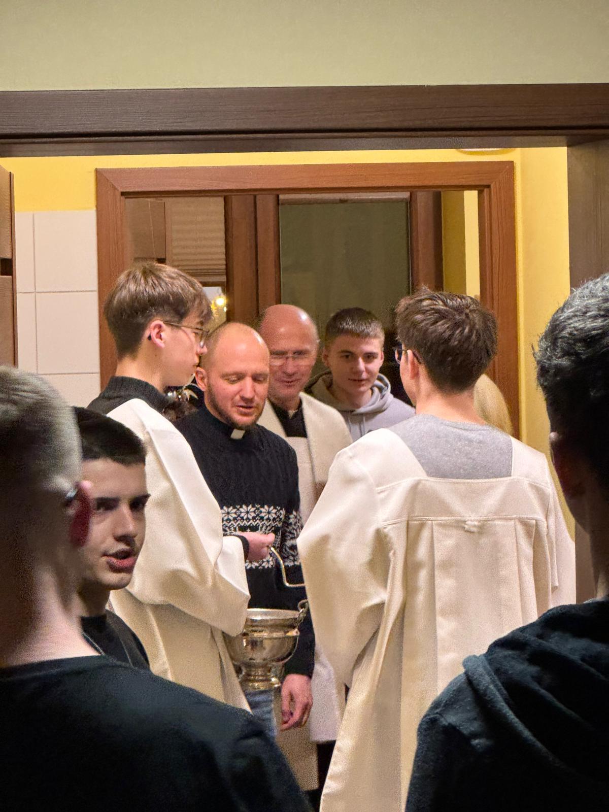 W czwartkowy wieczór – 9 stycznia, spotkaliśmy się wspólnie na holu głównym, aby rozpocząć kolędę. Ojciec Andrzej – Duchowny Bursy – w asyście lektorów rozpoczął spotkanie modlitwą i ogólnym błogosławieństwem, później udał się wraz z mieszkańcami, zespołem muzycznym – i śpiewem kolęd na ustach – do poszczególnych pokoi wychowanków, błogosławiąc ich indywidualnie oraz rozdając obrazki kolędowe. Po części modlitewnej przyszedł czas na wspólny poczęstunek. Nasze niezastąpione panie kucharki przygotowały pyszne słodkości, nie zabrakło również zimowej herbatki oraz rozmów, którym nie było końca. Wspólnie zaśpiewaliśmy kolędy. To był dobry czas…