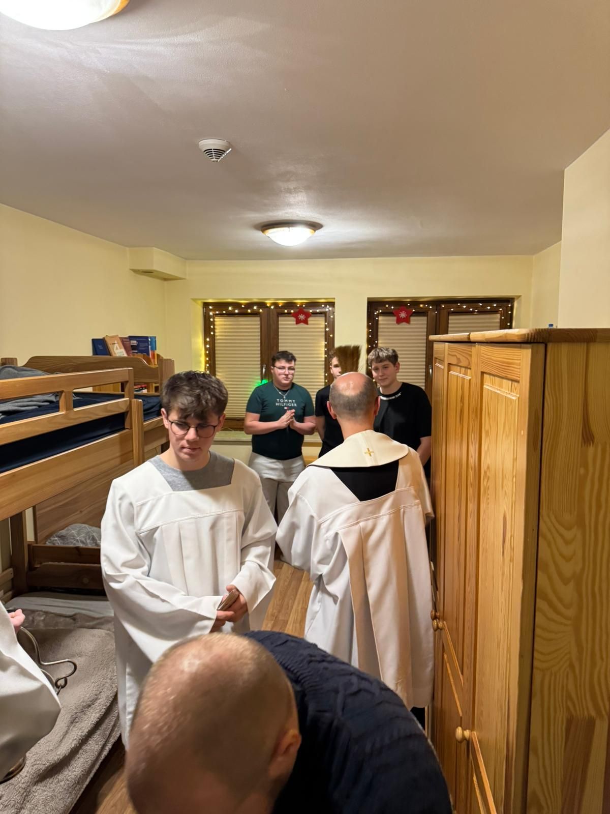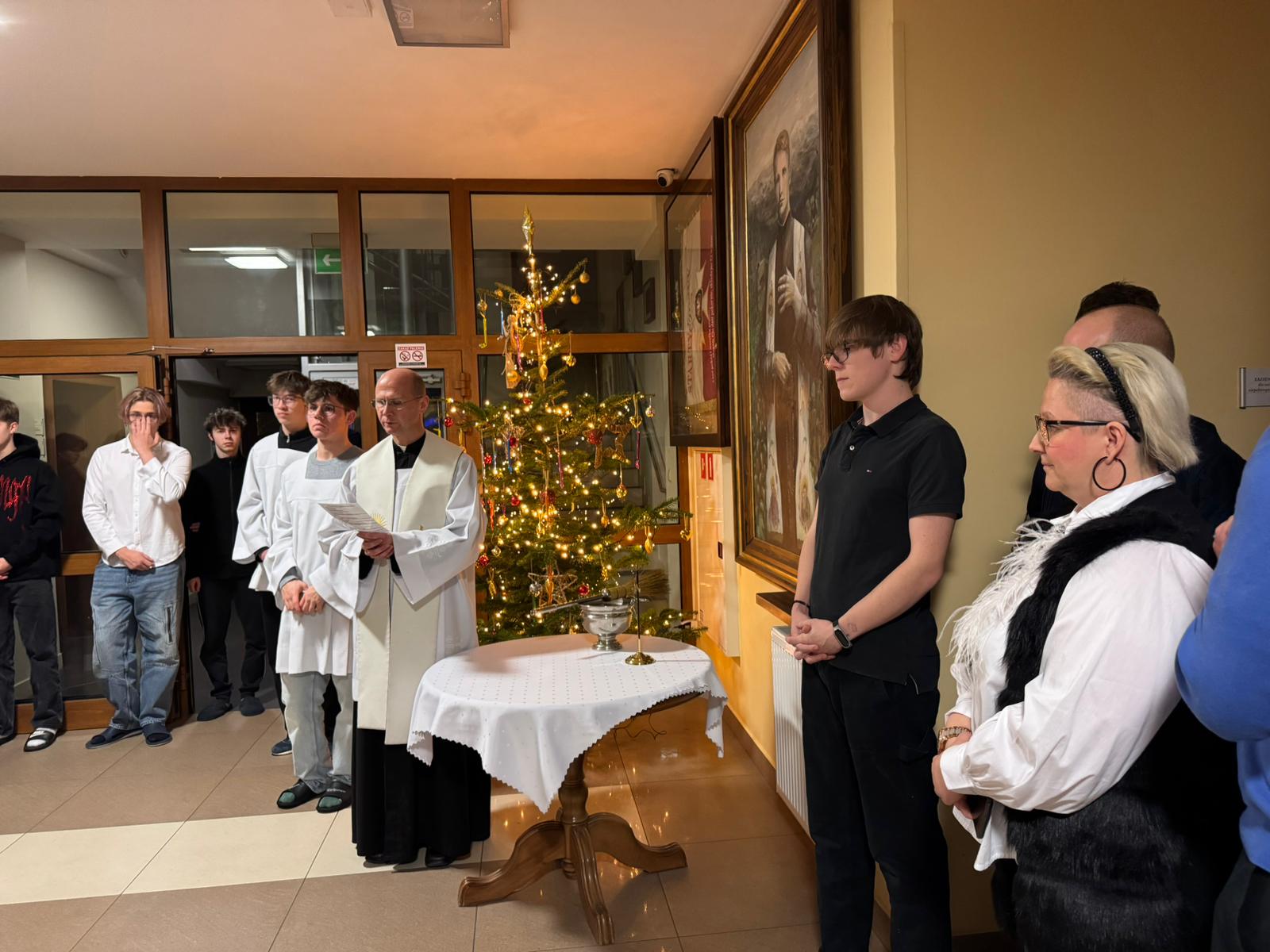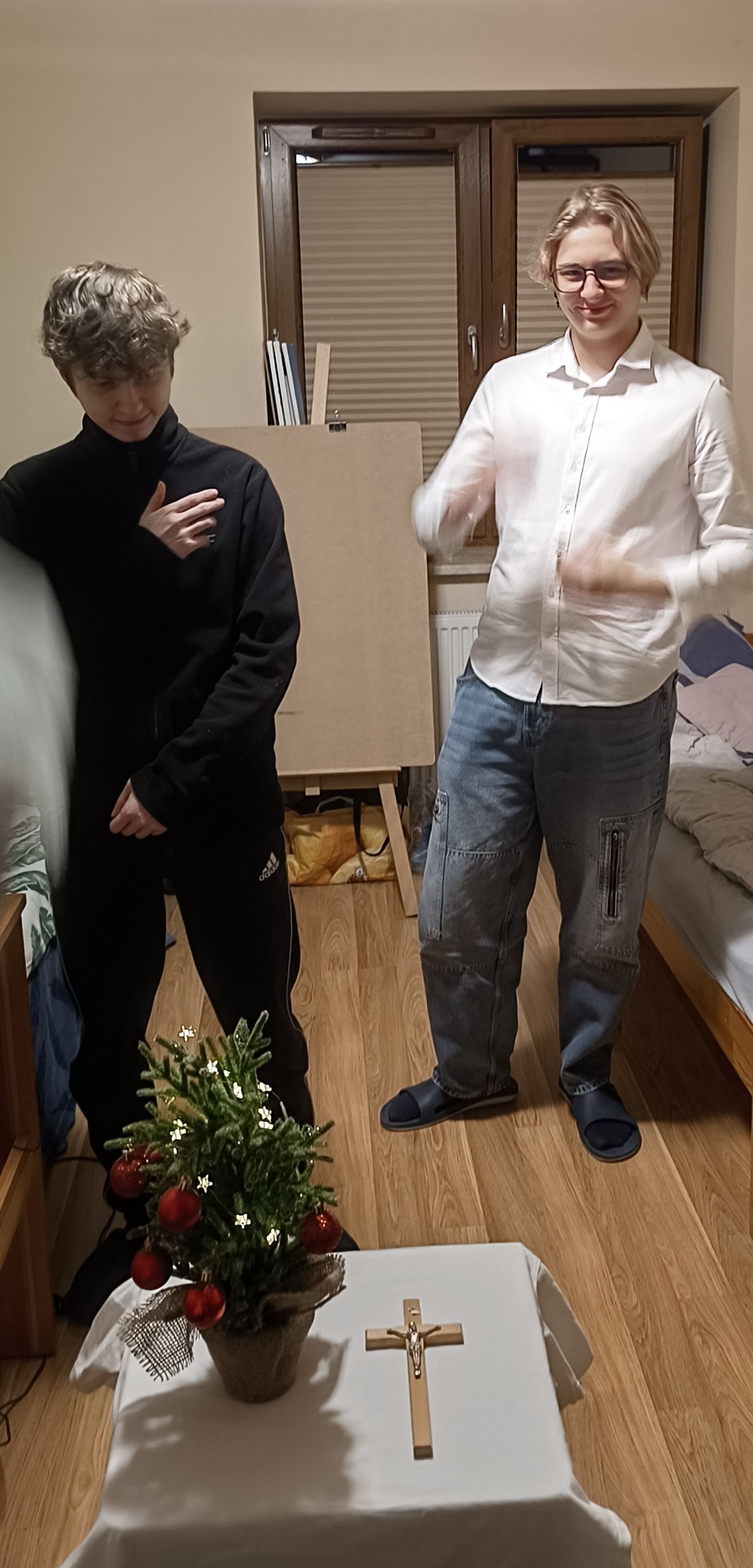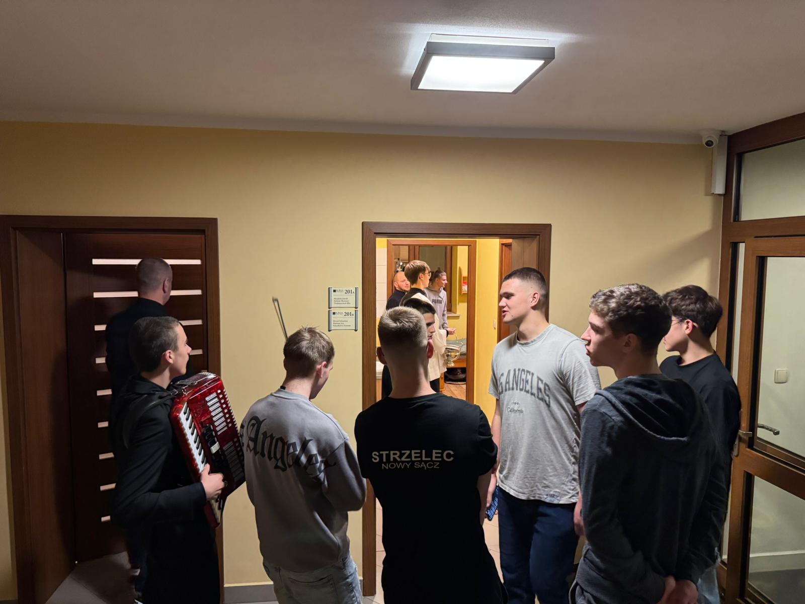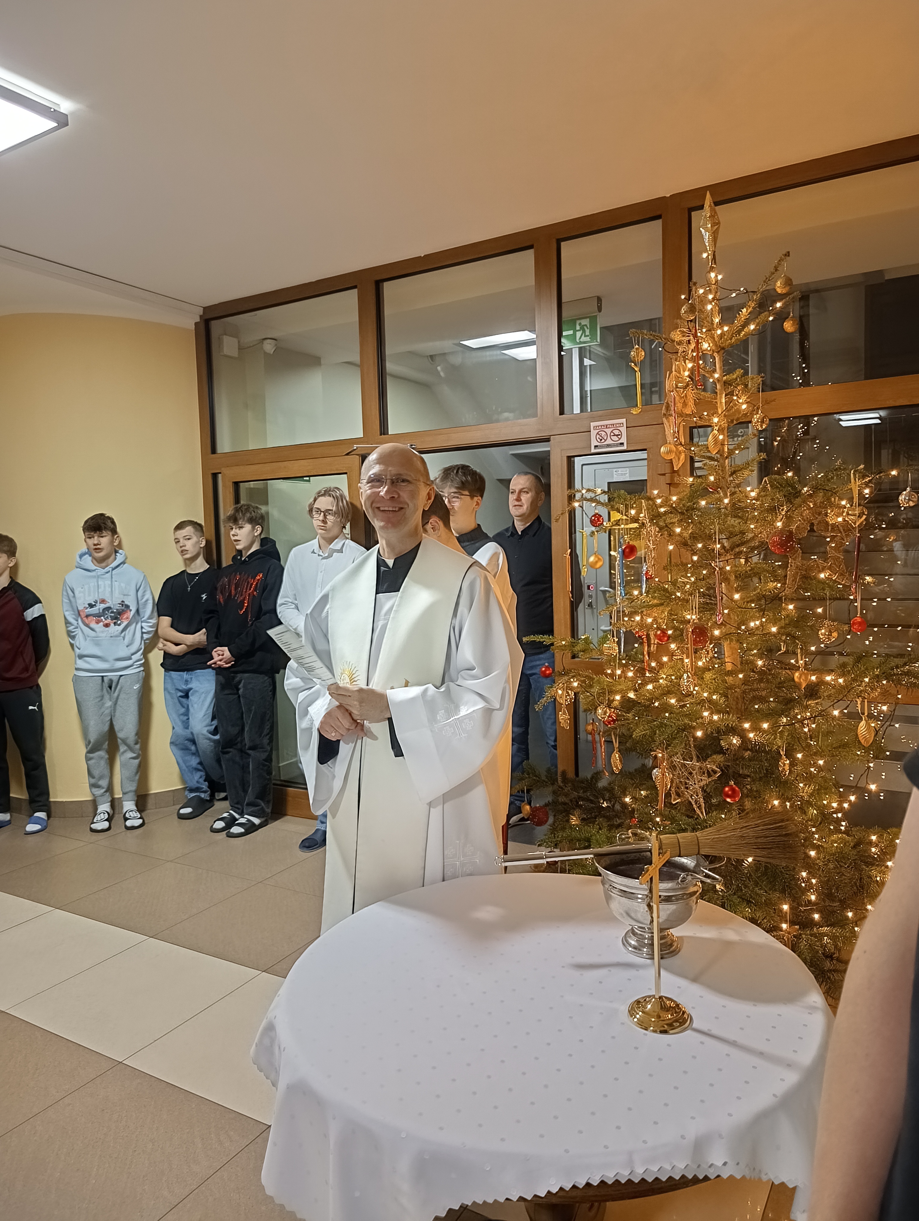 W czwartkowy wieczór – 9 stycznia, spotkaliśmy się wspólnie na holu głównym, aby rozpocząć kolędę. Ojciec Andrzej – Duchowny Bursy – w asyście lektorów rozpoczął spotkanie modlitwą i ogólnym błogosławieństwem, później udał się wraz z mieszkańcami, zespołem muzycznym – i śpiewem kolęd na ustach – do poszczególnych pokoi wychowanków, błogosławiąc ich indywidualnie oraz rozdając obrazki kolędowe. Po części modlitewnej przyszedł czas na wspólny poczęstunek. Nasze niezastąpione panie kucharki przygotowały pyszne słodkości, nie zabrakło również zimowej herbatki oraz rozmów, którym nie było końca. Wspólnie zaśpiewaliśmy kolędy. To był dobry czas…