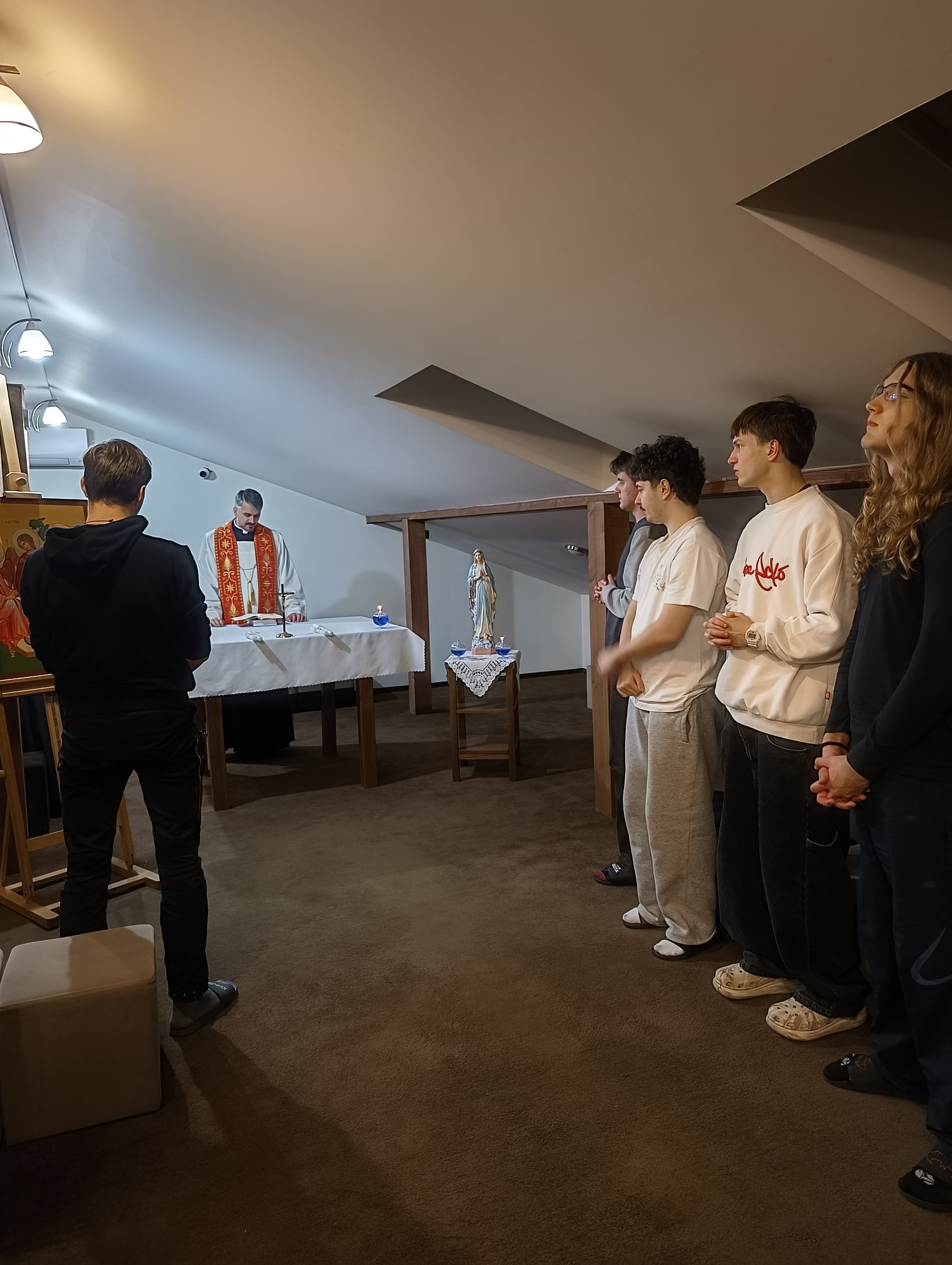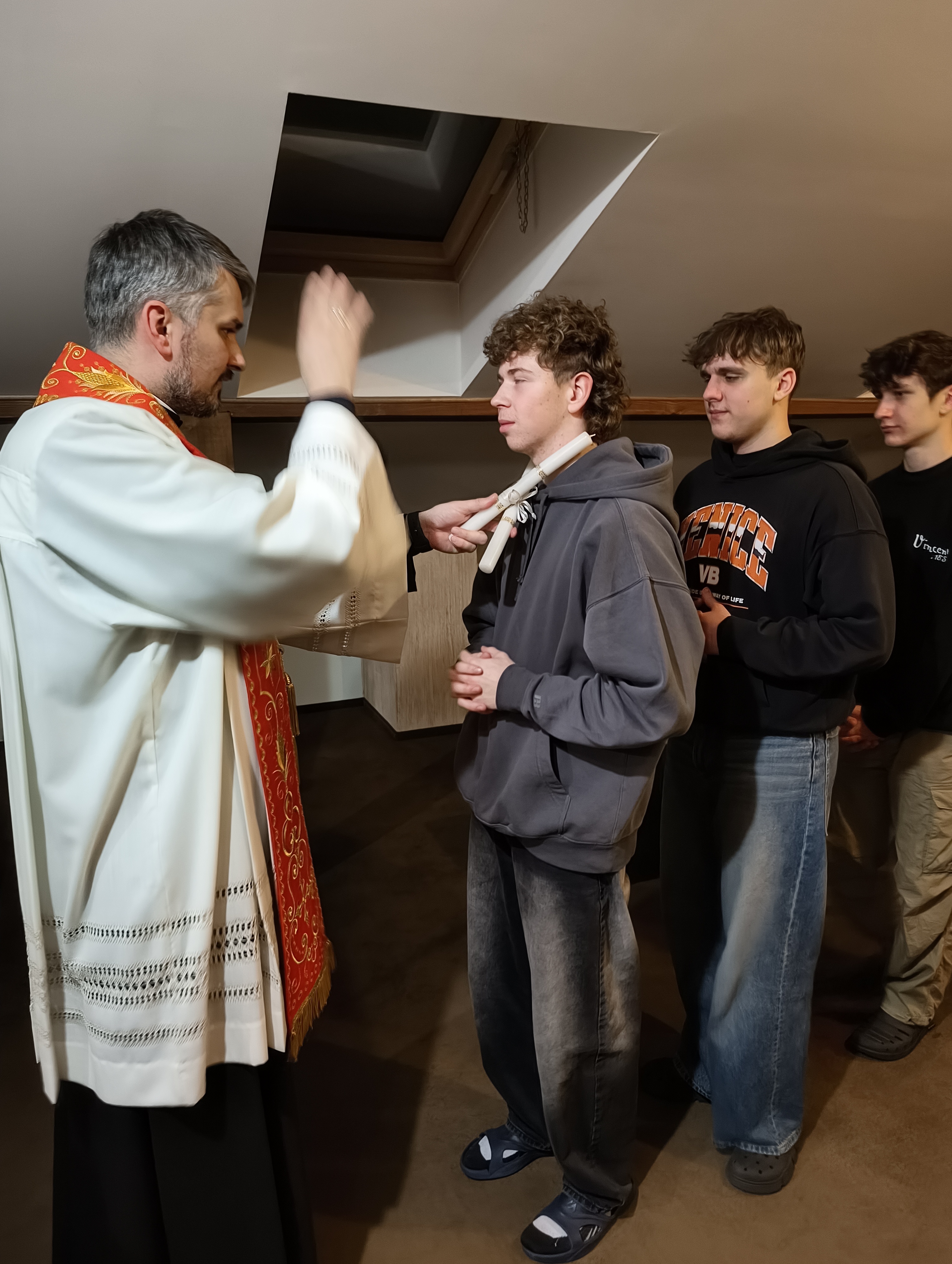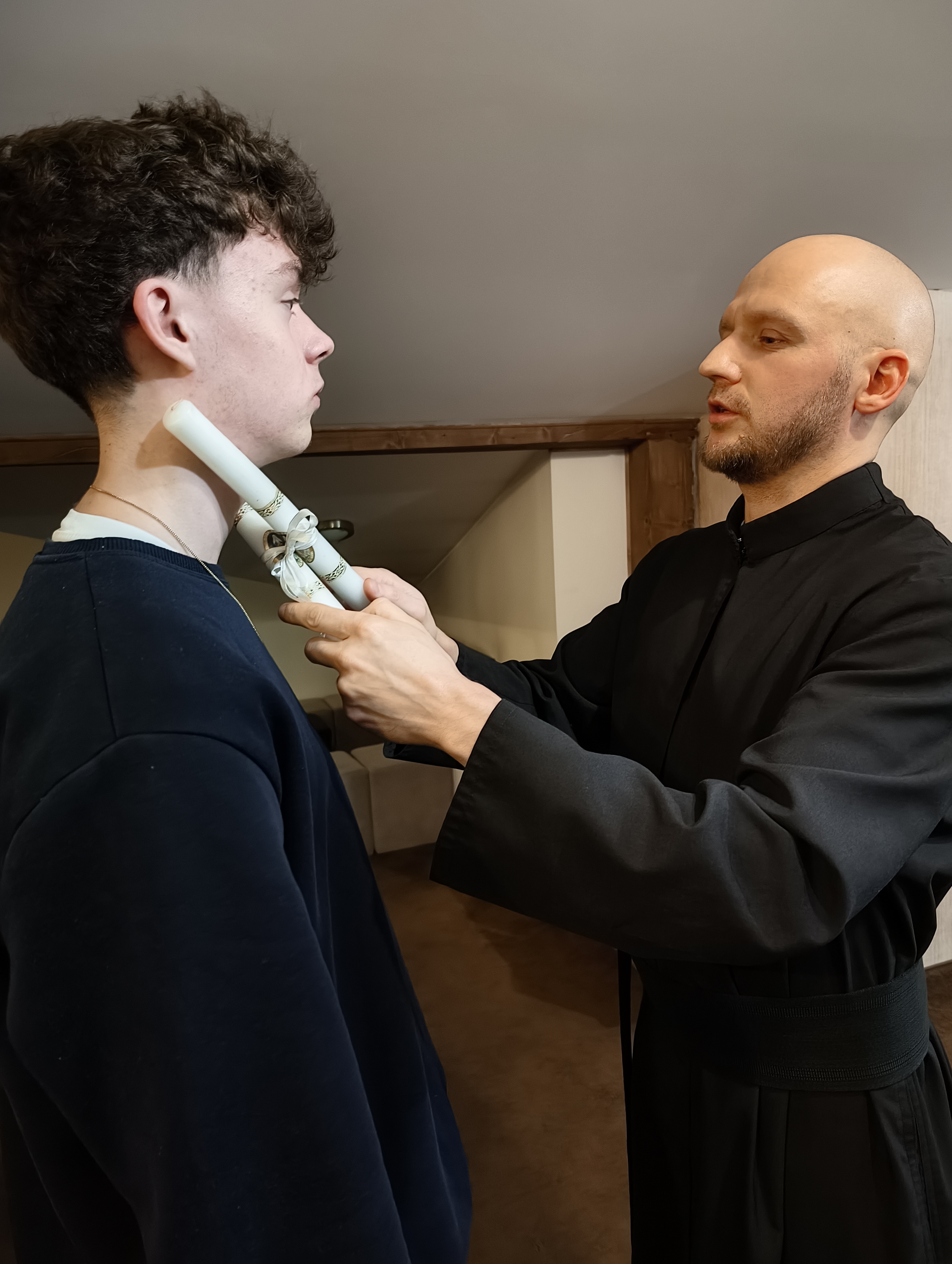 3. lutego wieczorem, w dniu, w którym obchodzimy święto św. Błażeja, w naszym Oratorium ojciec Dyrektor zorganizował spotkanie, podczas którego przybliżył wszystkim postać św. Błażeja, biskupa i męczennika. Za jego wstawiennictwem prosiliśmy Boga o zdrowie gardła i o łaskę dobrego korzystania z daru mowy, kontrolowania wypowiadanych przez nas słów, które niejednokrotnie dużo bardziej ranią drugiego człowieka niż czyny. Każdy z mieszkańców przyjął specjalne błogosławieństwo. Ojciec Dyrektor i nasz scholastyk, ks. Eugeniusz, odmawiali słowa modlitwy i dotykali gardeł dwiema świecami, zwanymi potocznie „błażejkami”, co ma uchronić nas od chorób gardła i wszystkich innych dolegliwości.
