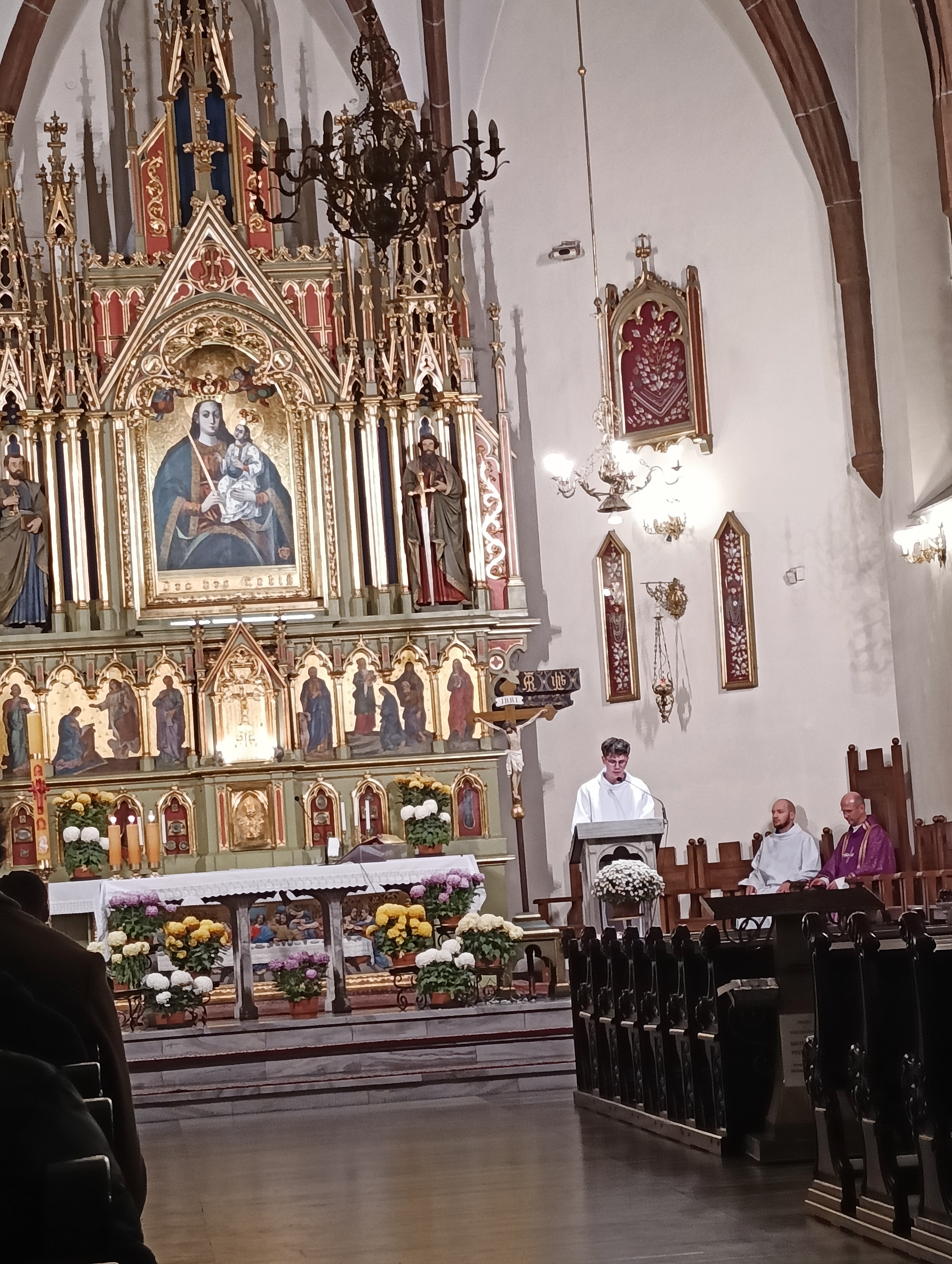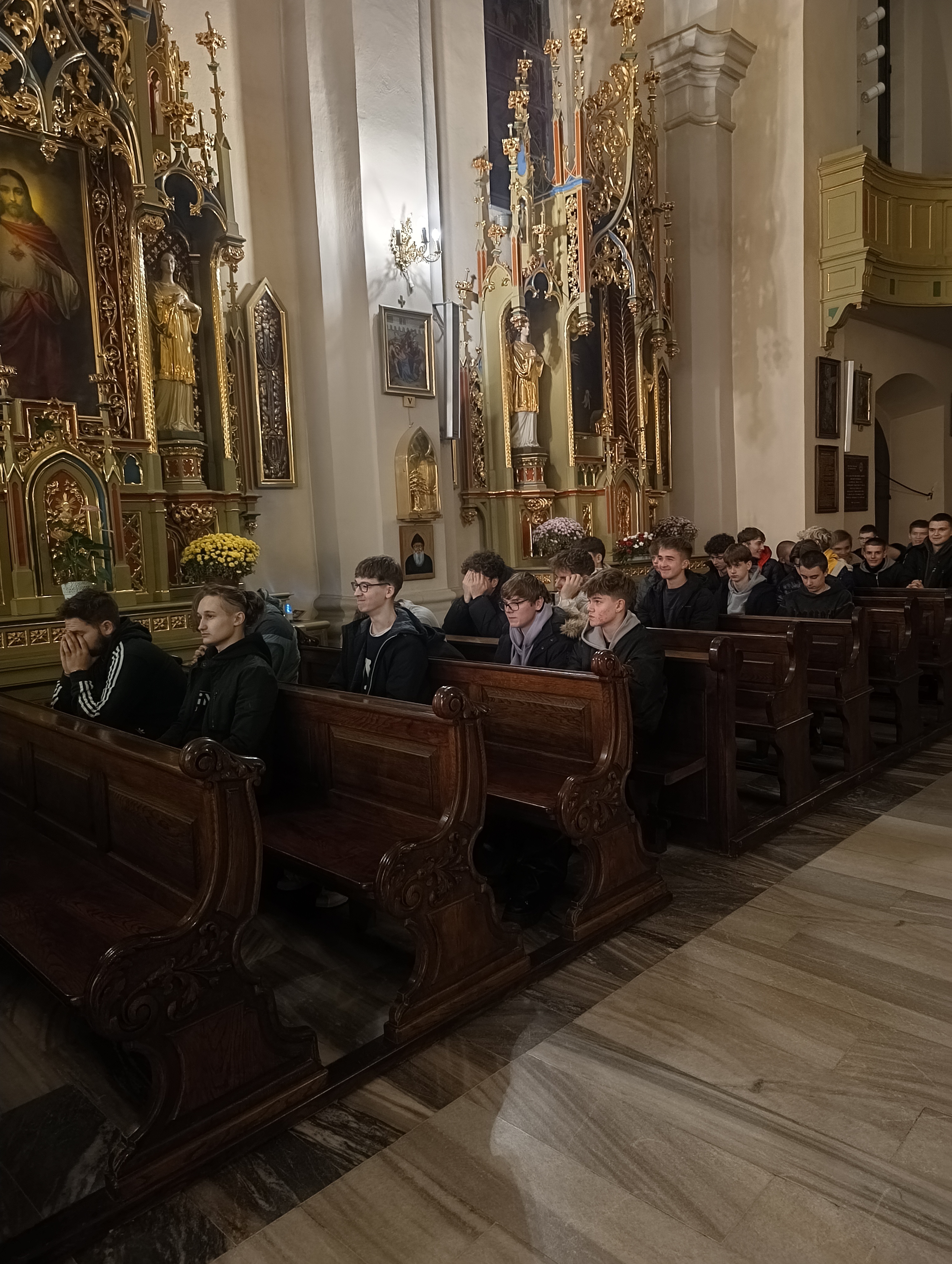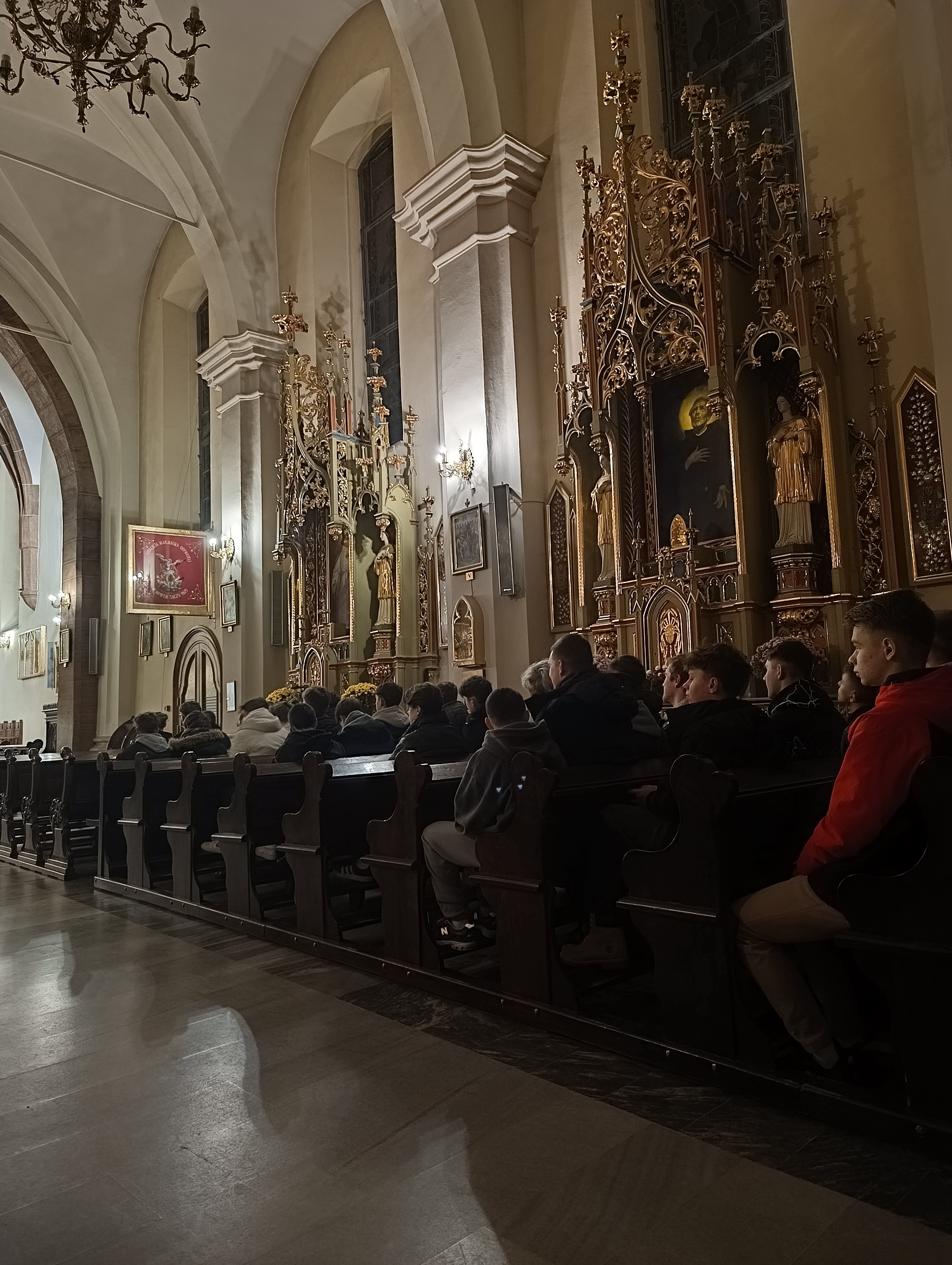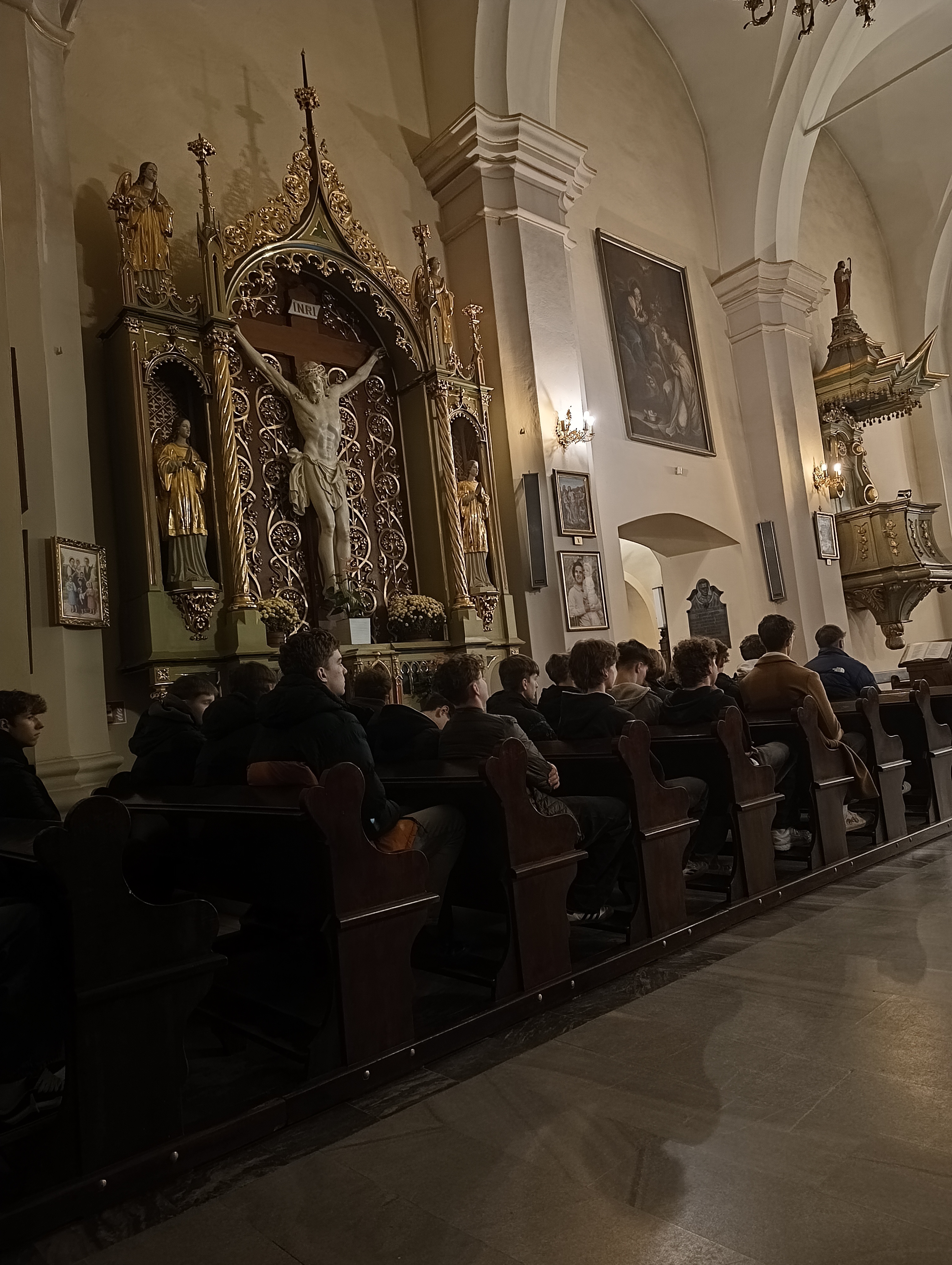 27 listopada wieczorem, w Sanktuarium Matki Bożej Pocieszenia u ojców jezuitów uczestniczyliśmy, jako społeczność Bursy, w uroczystej Mszy Świętej połączonej z wypominkami za naszych bliskich zmarłych. Przed Eucharystią, Patryk odczytał, spisane wcześniej na kartach, imiona i nazwiska tych, którzy już od nas odeszli. Mieliśmy także okazję wsłuchać się w płomienne kazanie o. Andrzeja, naszego duchownego, który przypomniał nam o ulotności życia i zasugerował dlaczego tak ważnym jest by szlifować samego siebie każdego dnia, w najdrobniejszych rzeczach.